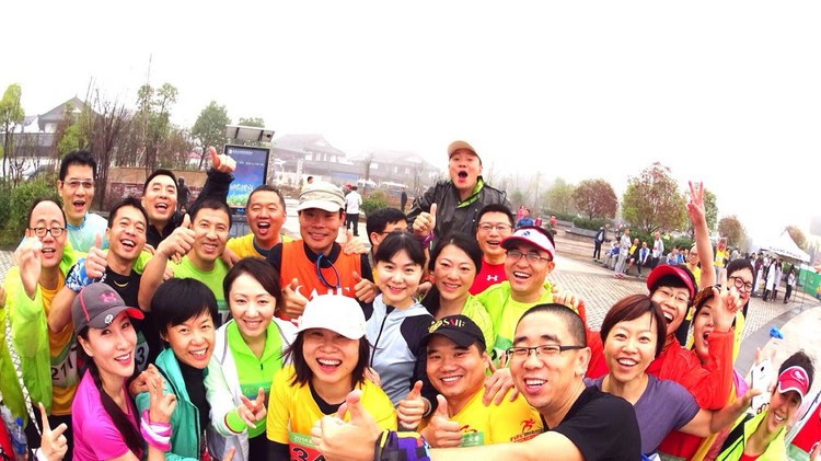 20公里临近终点时,一场大雨哗然而至,最后百米速度冲刺跑到终点的队友,一边捧着热腾腾的姜茶感谢后勤组,一边感慨:这雨中奋力冲向终点,还真是一个豪迈啊!以幽默著称的高金才子苏琦(EMBA北京首期,戈九A队队员)同学打趣到:“跑步是快乐的,但是只有快了,才能乐起来!”