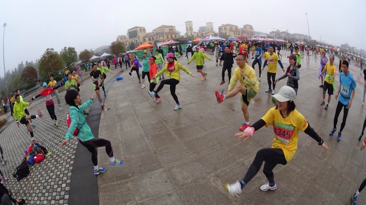 30日清晨天刚蒙蒙亮,参加首次武夷山马拉松的40多名队员,乘着中巴,开到了起点武夷广场,戈九A队队员尹丽萍(EMBA北京二期)与钟小平(EMBA北京二期)带着大家开始跑步,热身,拉伸,专业的姿势吸引了跑友们的注意,连当地跑友也加入了欢乐的拉伸队伍。而跑步之前的各种组合合影,欢声笑语,让大家还没有跑步已经High翻了天!
